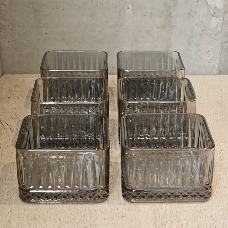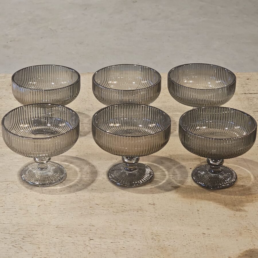 COMPOTERAS DE VIDRIO LABRADAS GRIS X6