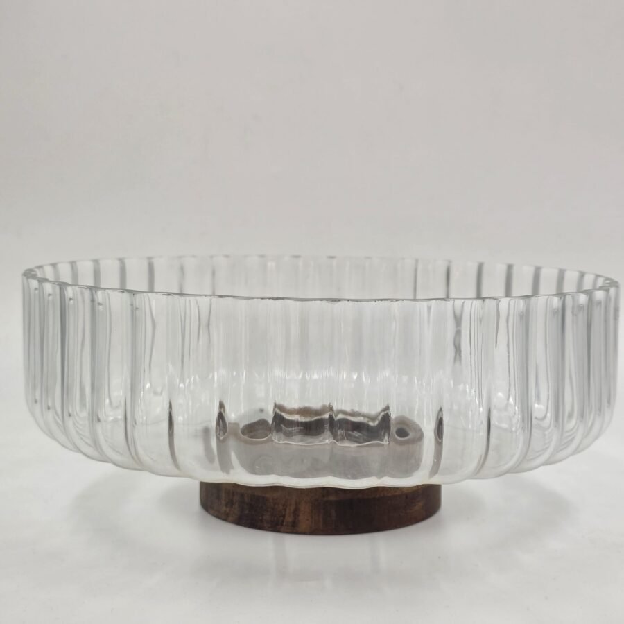 BOWL VIDRIO BASE MADERA 26CM