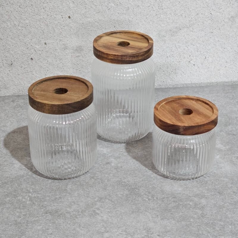 FRASCO DE VIDRIO X3 TAPA MADERA