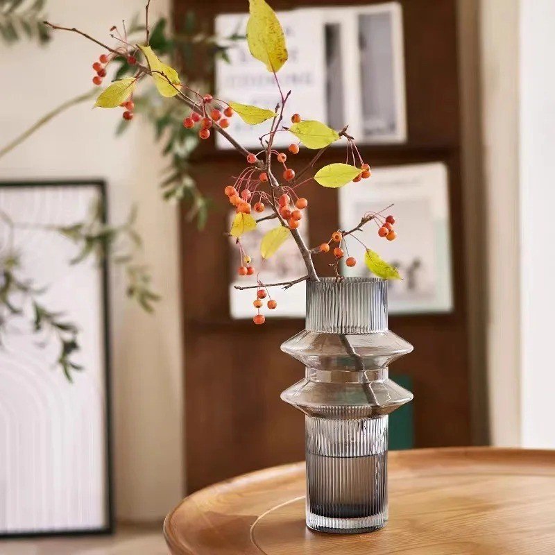 FLORERO DE VIDRIO CHICO HUMO 10 X 25CM