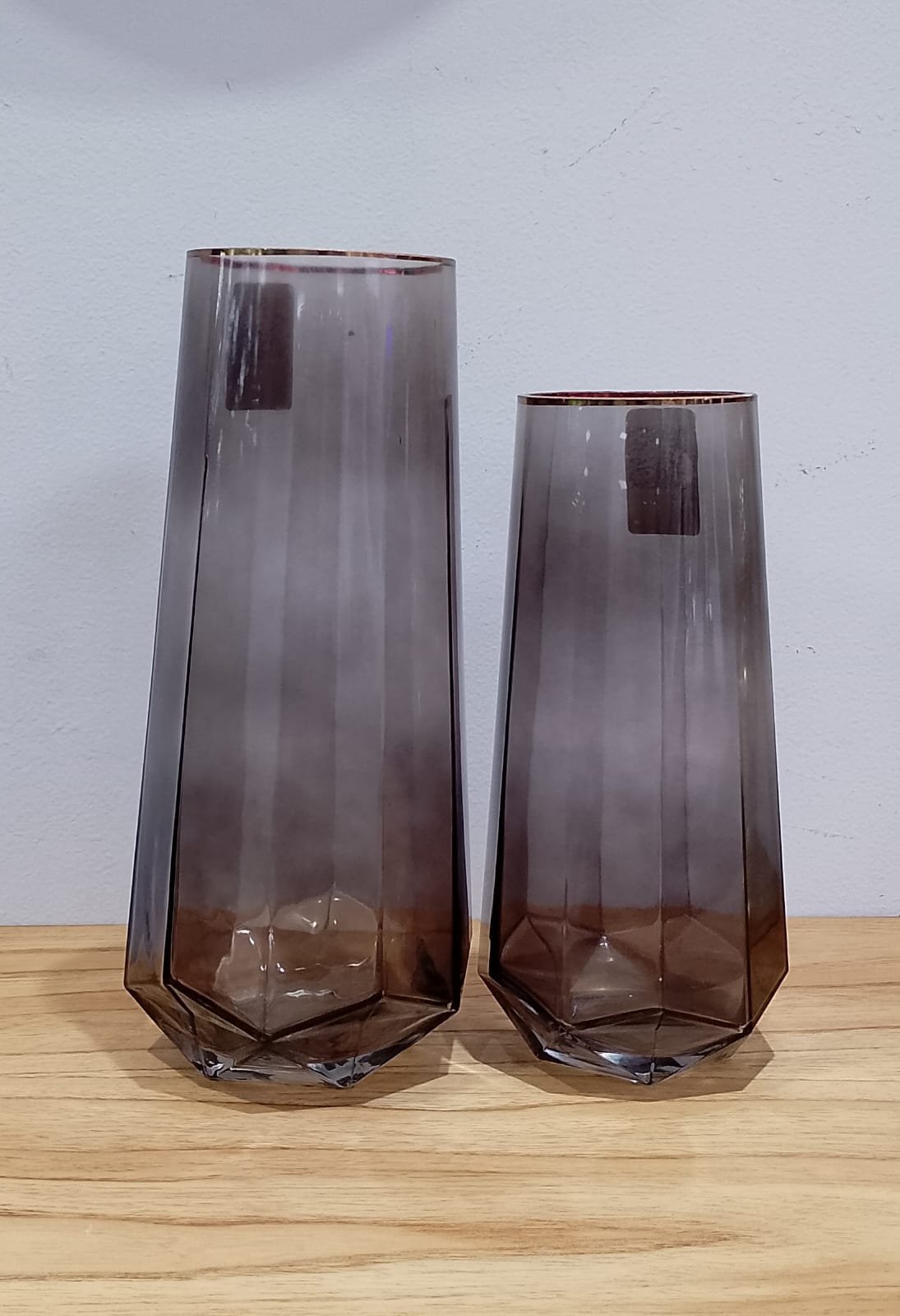 FLORERO DE VIDRIO CHICO HUMO 10 X 25CM