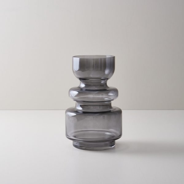 JARRON VIDRIO NEGRO Y GRIS CHICO