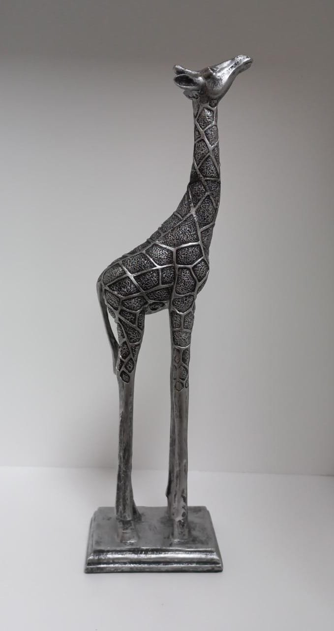 JIRAFA RESINA CHICA 23 CM. PLATA